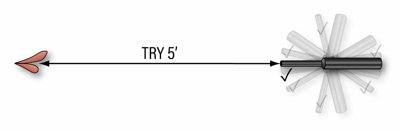 Orientation of microphone is not that crucial, start with mouth aimed at microphone and with mouth and microphone separated by 5 feet
