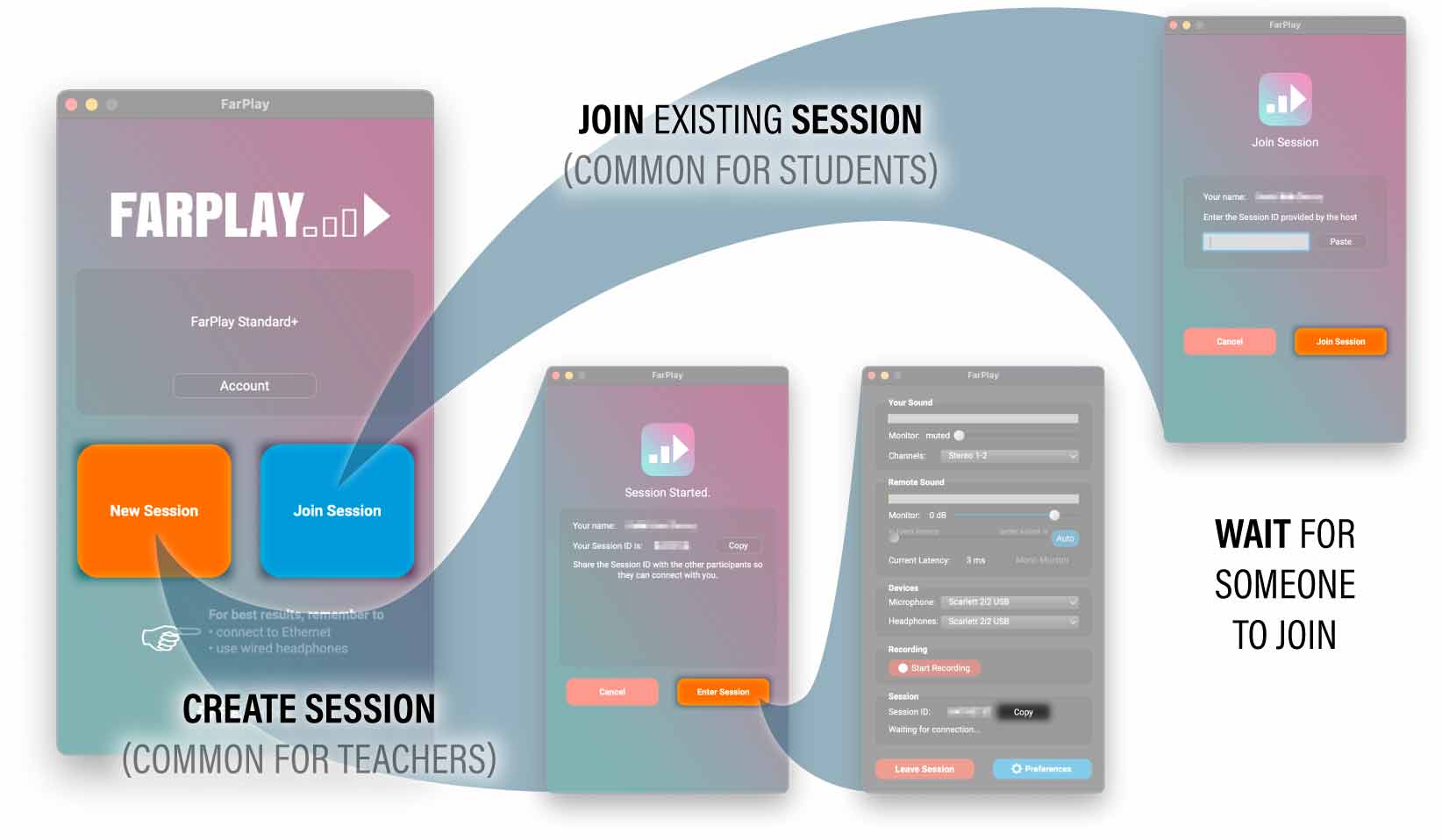 FarPlay (Runov & Tepfer) is a p2p descendant of JackTrip (Chafe & Cáceres). |